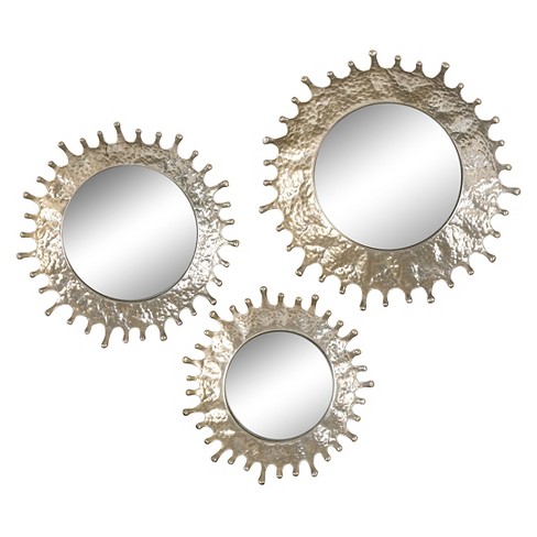 Uncategorized Round Gold Mirror Set Of 3 / Large jute rope wrapped flower shaped wall mirror. Layered round hanging wall mirror set of 4 $115.